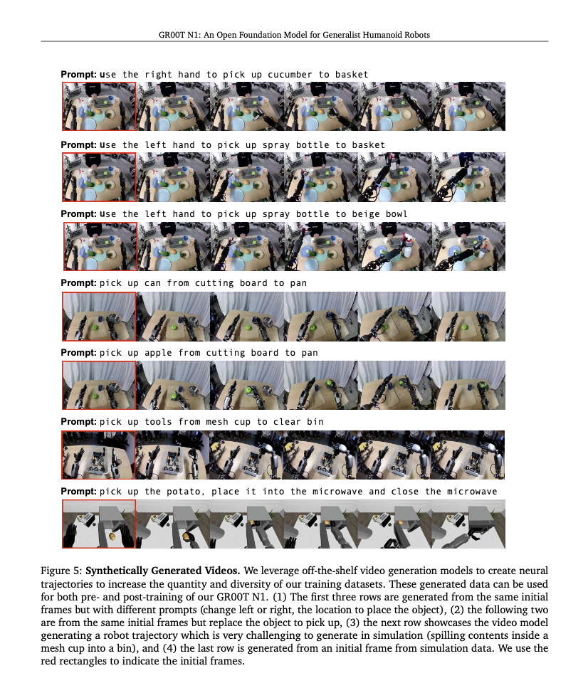 Besides neural trajectories and human videos, GR00T also uses large-scale simulation data generated via systems like DexMimicGen.